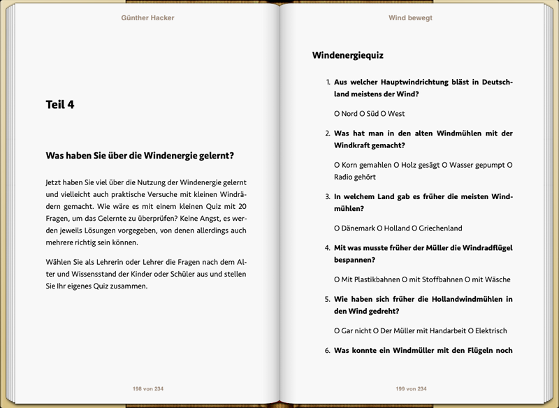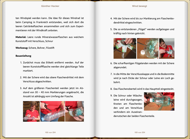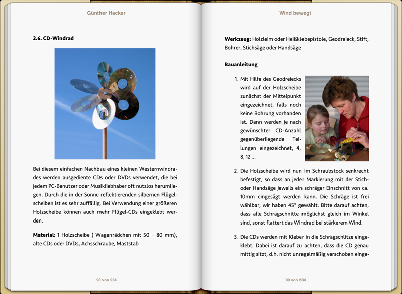 Die Co-Autorin dieses Buches, Gabriele Jerke, ebenfalls Lehrerin, hat mit vielen Ideen die Theorie in kleine nachbaubare Windräder mit und ohne Stromerzeugung umgesetzt. Das Material ist im Haushalt oder in der Schule vorhanden oder kann leicht beschafft werden.